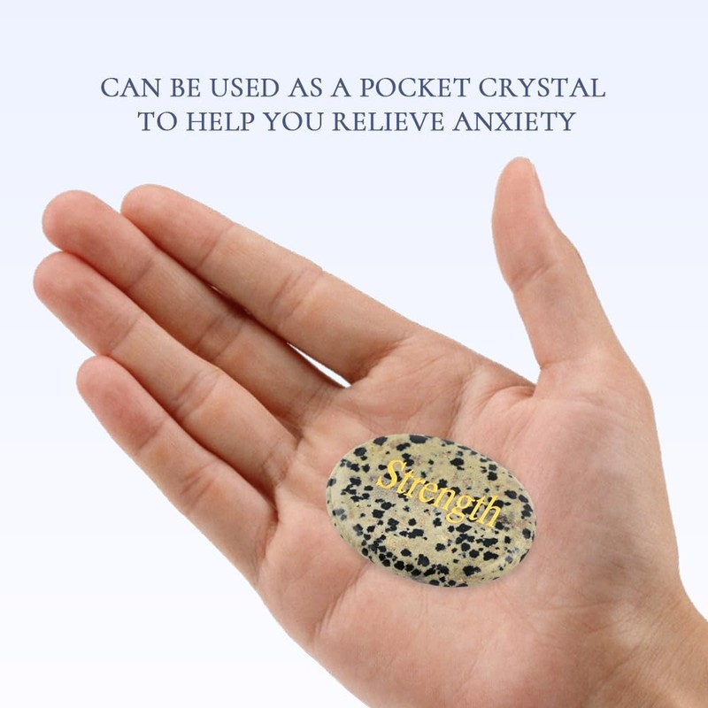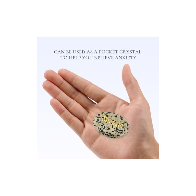 Dalmatian Engraved Inspirational Stones Natural Healing Crystal Strength Stone - Worry Stone for Anxiety and Stress Relief - Palm Stones for Meditation and Soothing Emotions, 1lb, Crystal, dalmatian