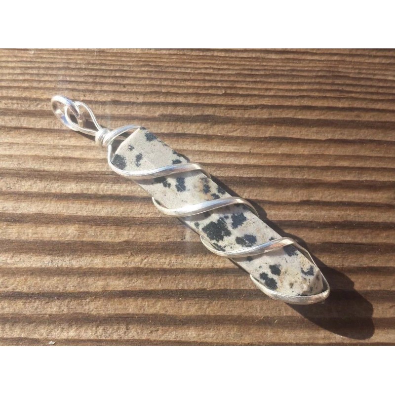 DALMATIAN JASPER SPIRAL WIRE WRAPPED PENCIL POINT PENDANT GEMSTONE