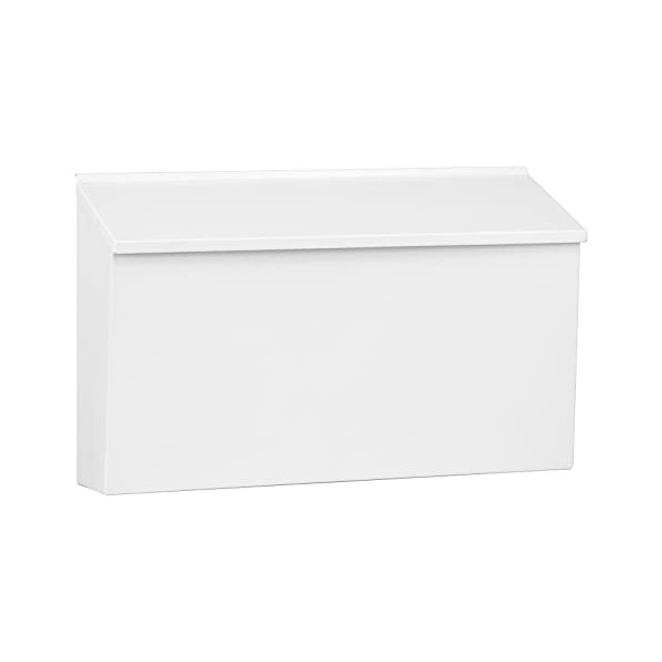 Dalmbox Wall-Mount Mailbox Large Mailbox for Post Rust-Proof Galvanized Steel Box for Outside or Townhouse Horizontal Style, White, 15.7” x 4.3” x 9.4”