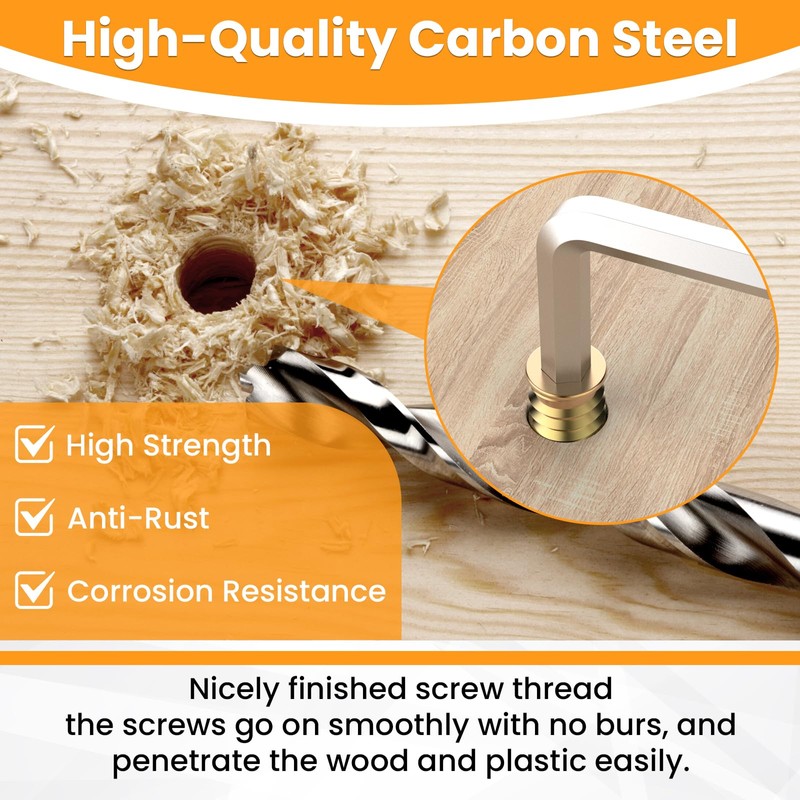 - 𝐄𝐚𝐬𝐲 𝐭𝐨 𝐈𝐧𝐬𝐭𝐚𝐥𝐥: The kits of threaded insert and bolt for wood come with two wrenches and a drill bit. Simply drill a hole of the appropriate size, and then use the provided hex wrench to quickly achieve a secure and sturdy installation. This can help you save time and effort