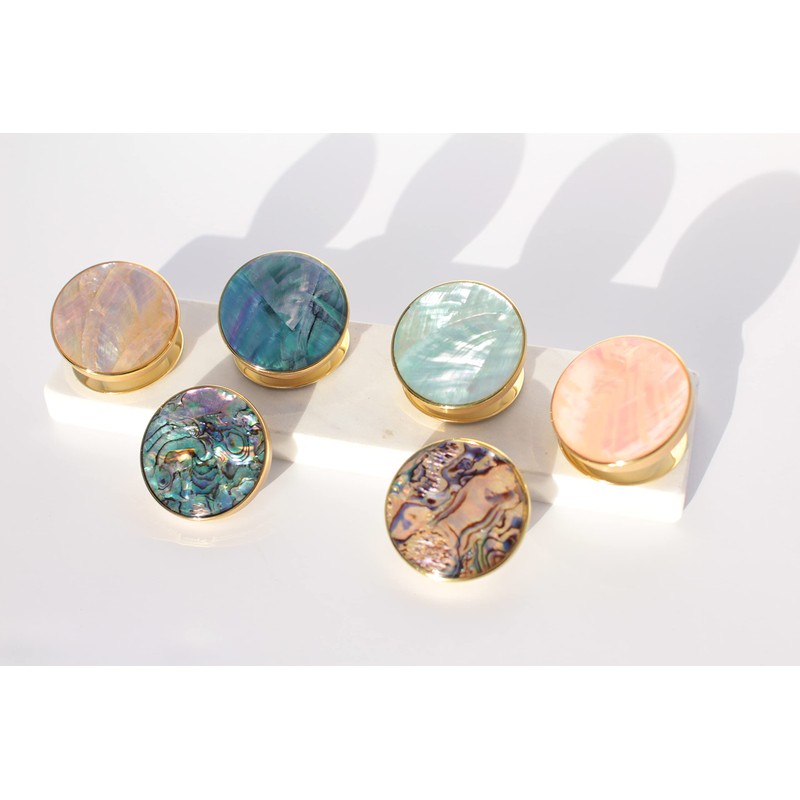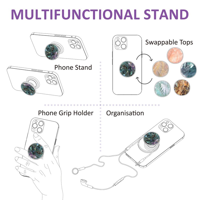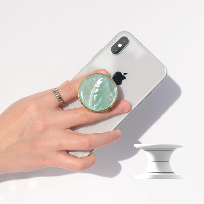 Our Mother of Pearl Phone Grip helps to keep you from dropping your phone and can be used as a stand. What a perfect way to accessorize your cell phone device. It is a unique accessory.
