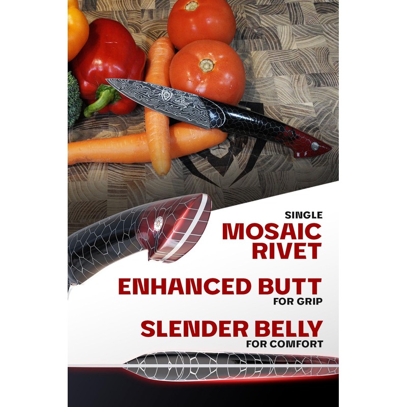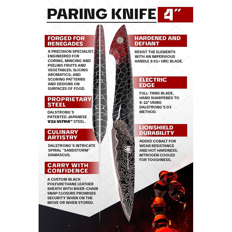 Dalstrong Paring Knife - 4 inch - Scorpion Series - Exclusive Japanese V12 Ultra™ Steel - Black Damascus - Black & Red Honeycomb Resin Handle - Custom-Fit Leather Sheath