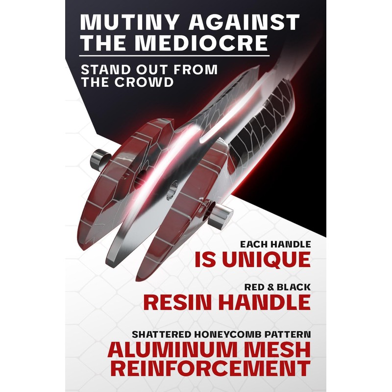 - Structurally sturdy handle with premium red and black resin reinforced with honeycomb aluminum mesh for durability. Shock absorbance for added endurance, comfort, and grip. Superior scratch resistant. Mosaic end rivet on the full-tang blade.