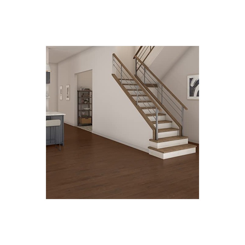 - Luxury Vinyl Flooring: 6" x 48" wood-look planks in various brown, grey and white tones