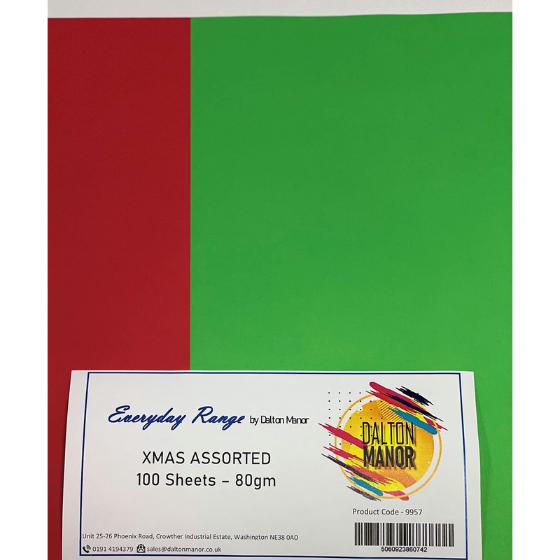 DALTON MANOR A4 COLOURED PAPER - 80GSM XMAS RED and GREEN ASSORTED PACK - 100 SHEETS