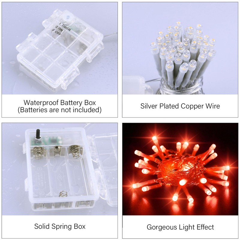 Dalugo Dalugo Rot Lichterkette Batterie Timer, 3M 30 LED Lichterkette Au?en Batterie mit 6h Timer, IP65 Wasserdicht Lichterkette Batterie Timer fr Innen au?en Weihnachtsdekorationen