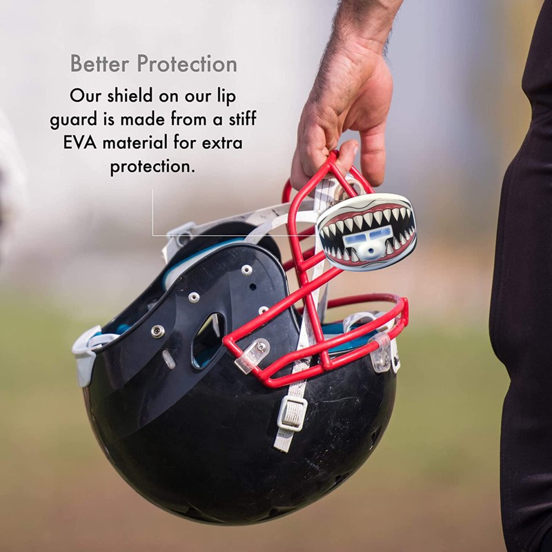 - HELMET STRAP INCLUDED: Keep track of your mouthguard with the convenient helmet strap. Easily pop it out during half time without the hassle of remembering where you set your important protective football gear.