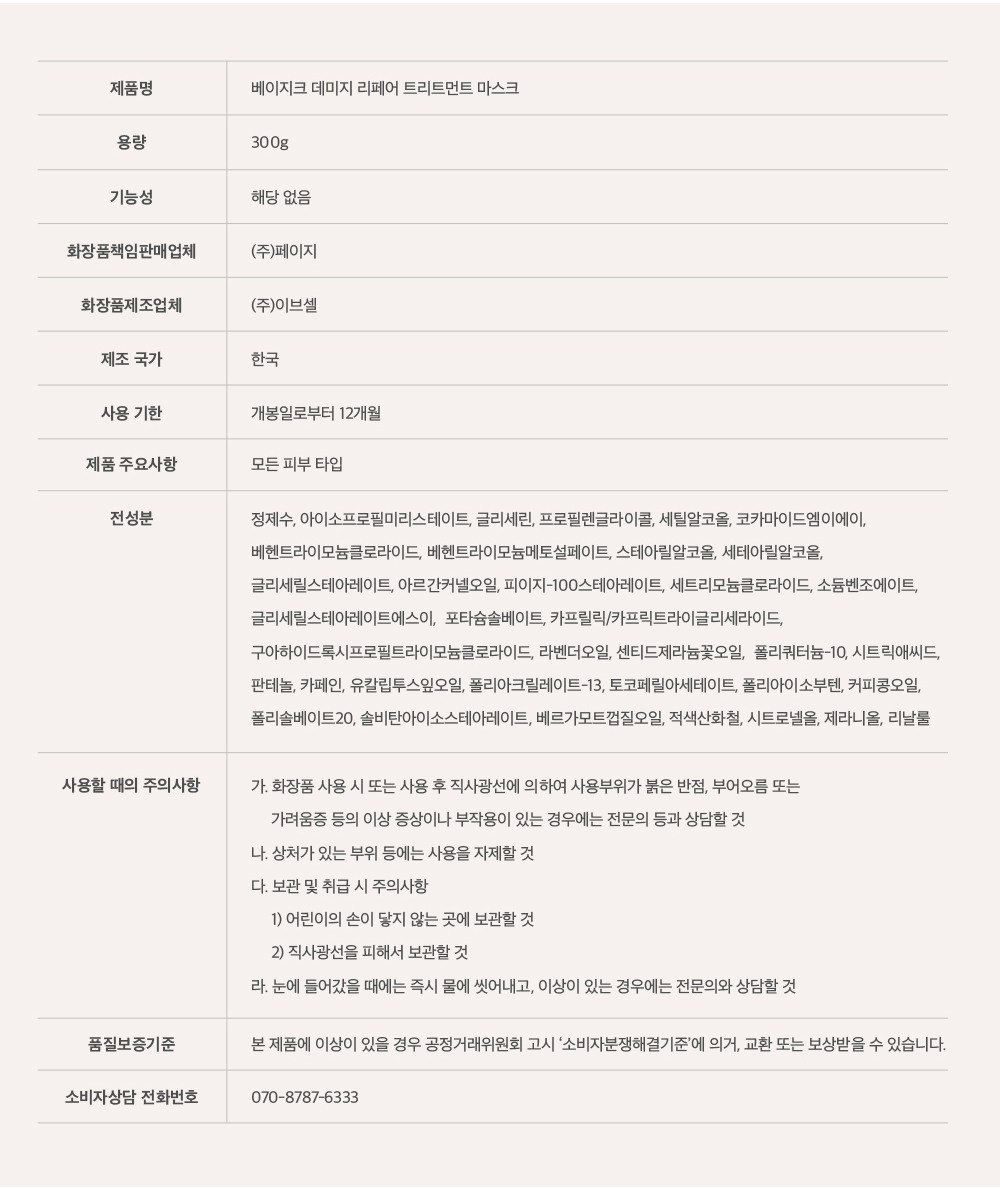 Damage Repair Treatment Mask 300g / 데미지 리페어 트리트먼트 마스크 300g