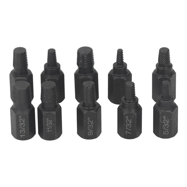 - 10PCS EXTRACTOR: With a comprehensive set of 10 sizes including 1/4, 7/32, 3/16, 5/32, 1/8, 13/32, 3/8, 11/32, 5/16, and 9/32 inches, this extractor covers all your needs. You'll have the perfect size for removing damaged screws, bolts, nuts, or studs.
