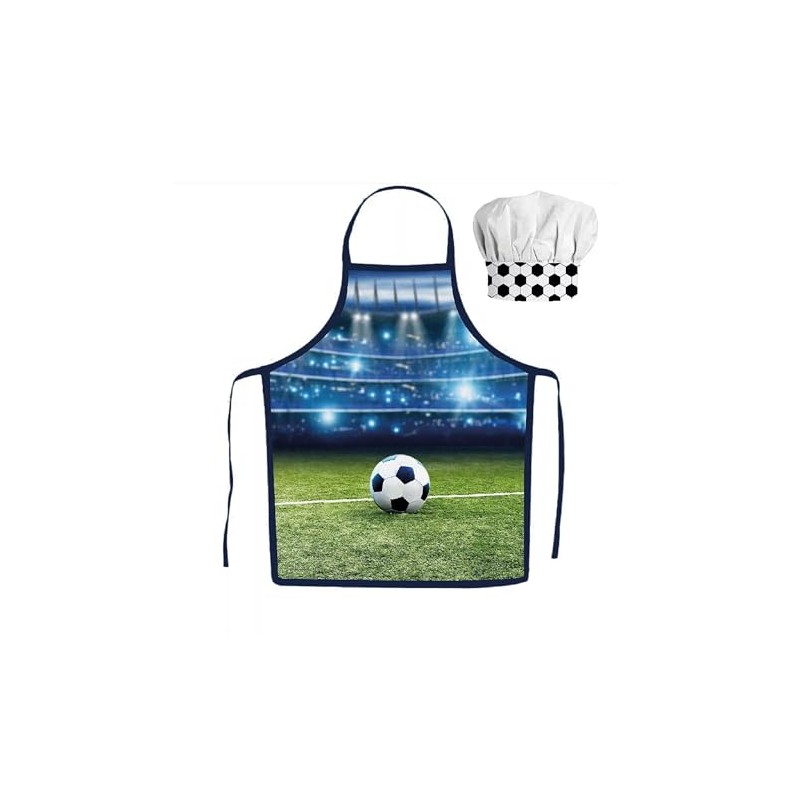 - Versatile children's cooking apron set: the set consists of a children's baking apron and an adjustable hat with the football motif. It is ideal for children from 3 years to 8 years who like to be little chefs in the kitchen and want to help with cooking and baking.