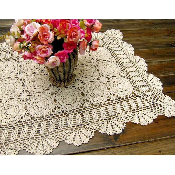 Damanni Rectangular Cotton Handmade Crochet Lace Table Runner Doilies Table Dresser Scarf Décor,19 Inch by 24 Inch,Beige
