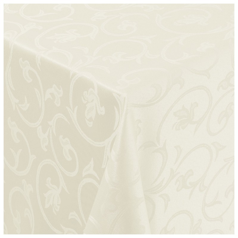 Damask Fabric Tablecloth, Baroque, Jacquard, Tendrils, Design with Hem, Recta...