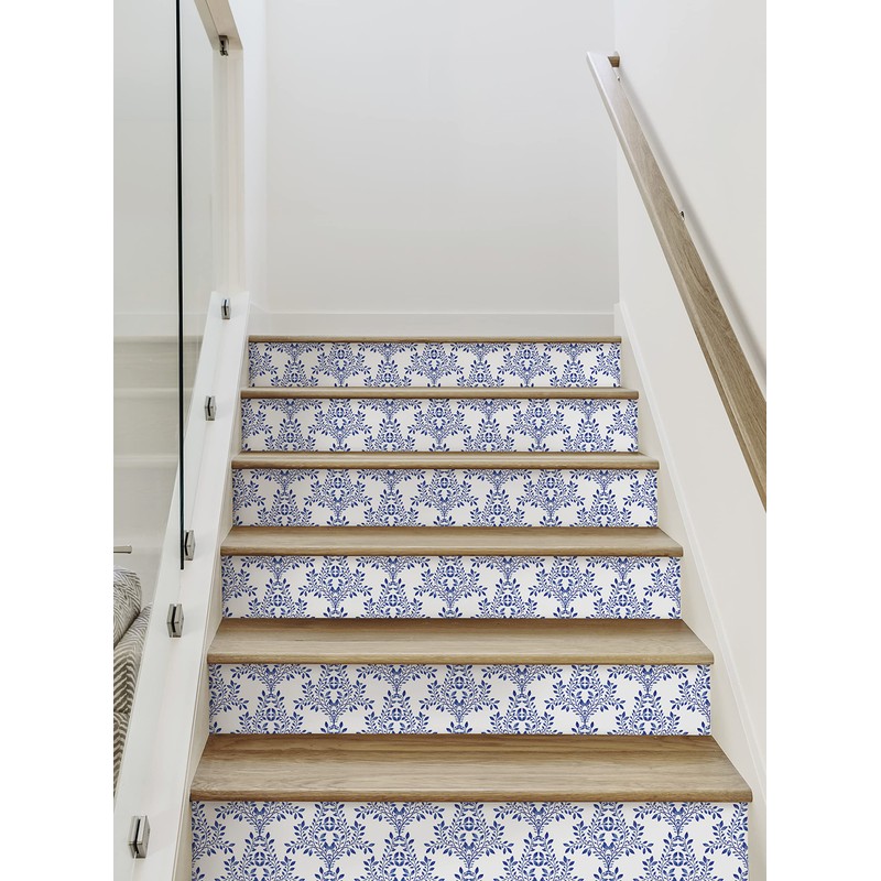 Damask Leaves Peel and Stick Stair Riser Strips (Royal Blue, 6 Pack - 48" w x 7.5" h)