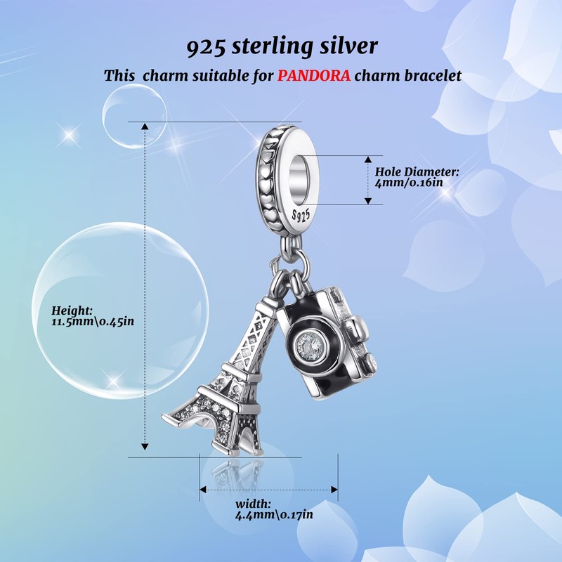 - Material:925er Sterlingsilber, eingelegt mit 5A+ Zirkonia. Die hochglanzpolierte Verarbeitung hält die Oberfläche des eiffelturm charms anhänger aus Sterlingsilber immer glänzend, verblasst nicht und kann lange getragen werden.