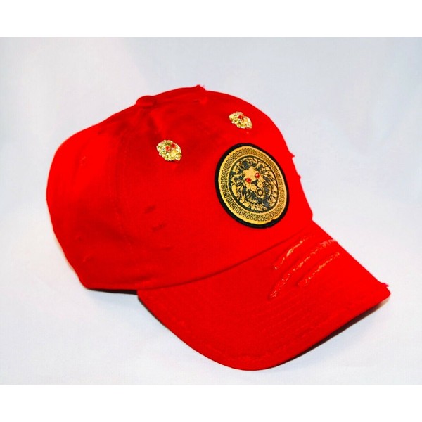 Damier Langevinè® Designer Trendy Distressed Fire Red Baseball Cap Lion Hat