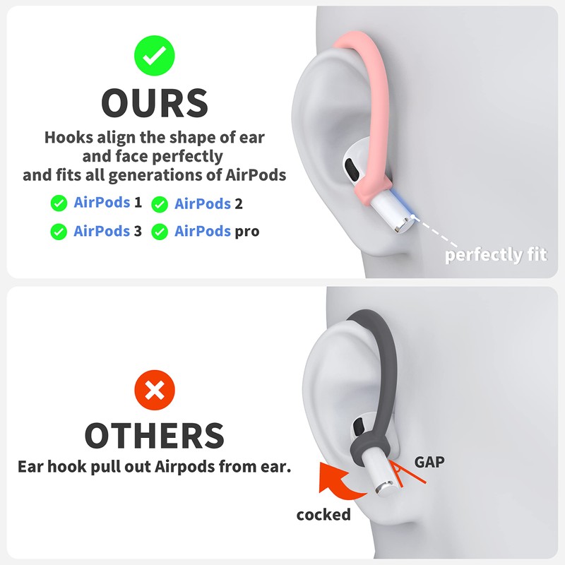 - GIVE NEW LIFE FOR YOUR AIRPODS. AirPods will fall or unsure? Here is the ideal AirPods Ear Hook for any kind of ears. Choose the best size according our guide.