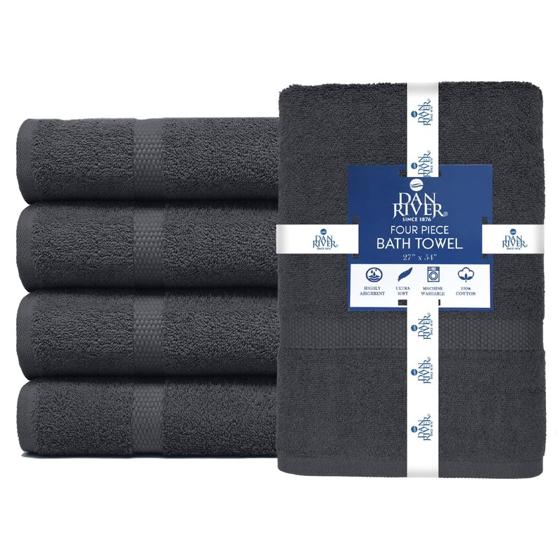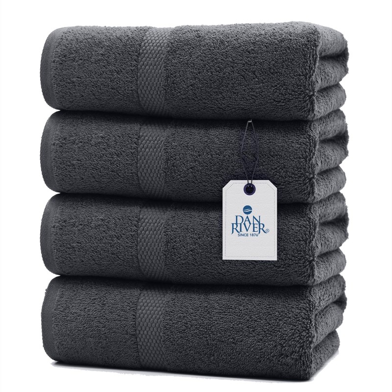 DAN RIVER Bath Towels Set of 4, 27 x 54 Inches, 100% Cotton, Larger & Lighter Weight, Quicker to Dry, Super Soft and Absorbent, Ideal Cotton Bath Towels for Daily Use, Charcoal