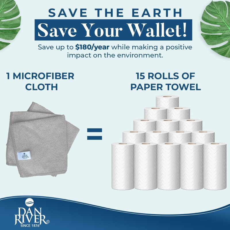 DAN RIVER Microfiber Cleaning Cloth - 12 Pack Economy Bundle - Soft, Absorbent Cleaning Rag - Microfiber Towels for Cars, Glasses, House, Windows, Kitchen - Gray (11.8βx11.8β)