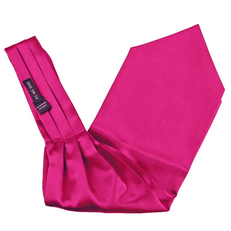 Dan Smith Solid Long-Self Ascot For Wedding Cravat Tie Silk Blend 53" Big And Tall, Deep Pink-c.c.aq.h.018, Extra Long Cravat Tie Hankie Set
