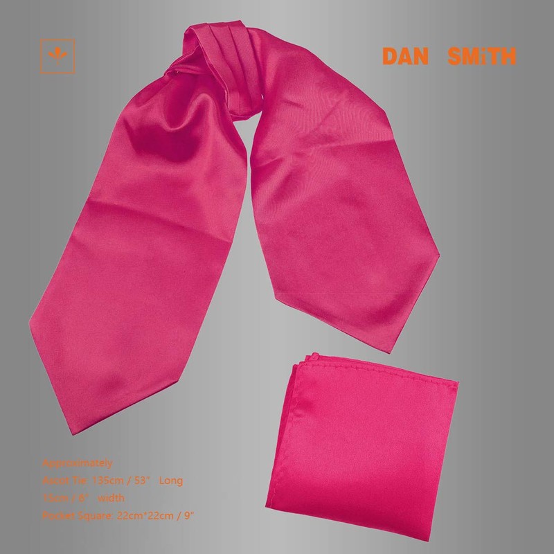 Size: Ascot Tie: Total Length 135cm / 53 inches, Extra Long, Neck size: up to 20 inches. Width: 15cm / 6 inches. Pocket Square: 22cm*22cm / 9 inches.