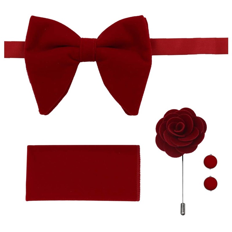 Dan Smith Suede Party Oversized Bow Ties Plain Oversized Bowtie Pocket Squares Cufflinks Lapel Pin Set Red Clip-On Adjustable Big C.C.O.T.004 Burgundy, Red