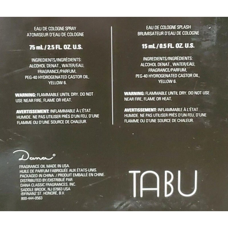 Dana 2pc ~ Dana Tabu ~ 2.5 oz eau de cologne spray + 0.5 oz mini splash bottle NIB