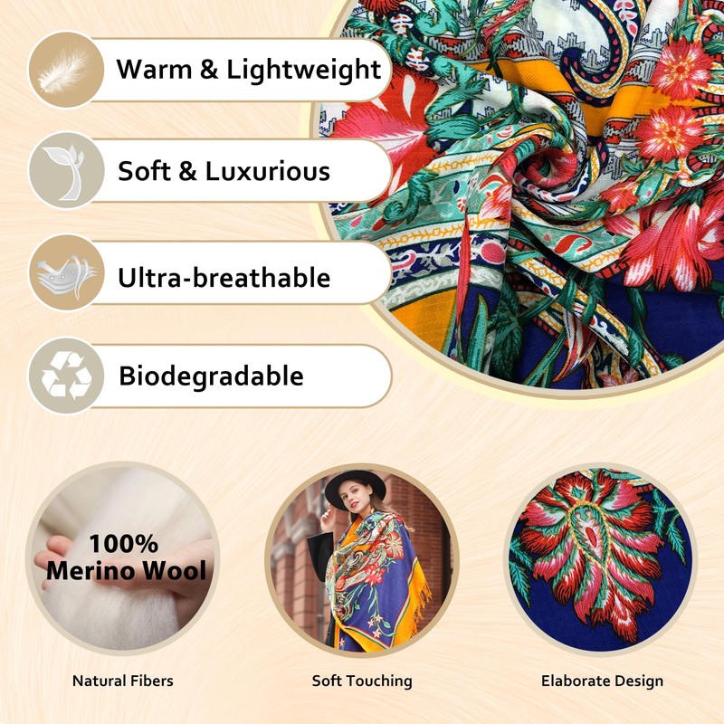 DANA XU 100% Merino Wool Extra Large Pashmina Blanket Travel Scarf Cashmere Wrap for Women Fall Winter Oversize Shawl Floral