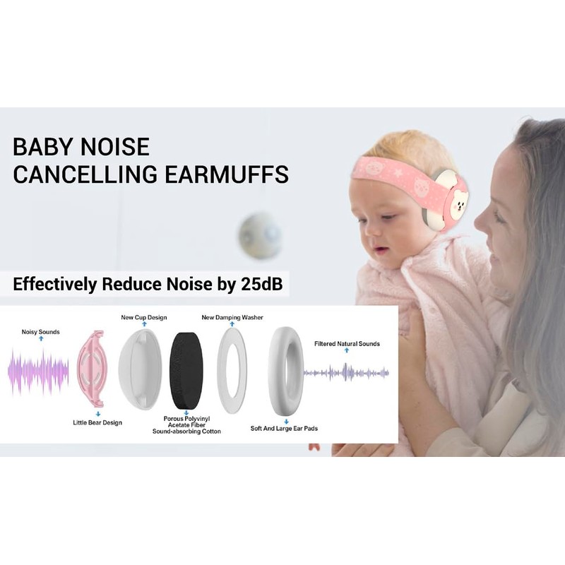 - Noise Reduction: Soft earmuffs reduce loud noises by up to 25dB, helping protect baby's sensitive ears at concerts, outdoor events, while sleeping or while traveling.