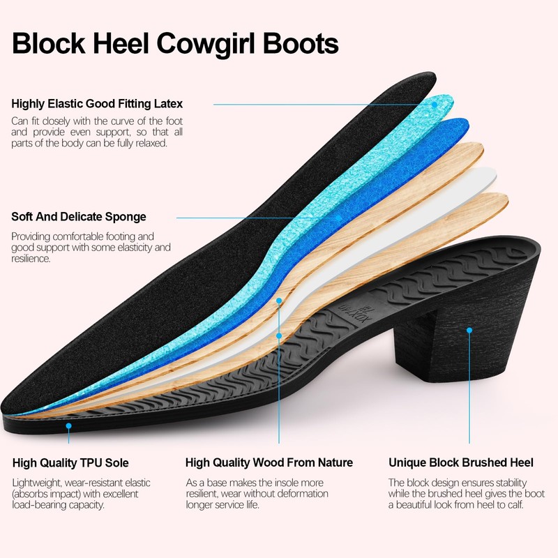 - DANAZANA rhinestone cowgirl boots feature a easy-to-wear half-zipper, crafted from high-quality faux suede that ensures durability and a luxurious feel. With a sharp pointed toe and a chic, low block heel, these wide calf rhinestone boots are not just for show—they're designed for a confident stride.