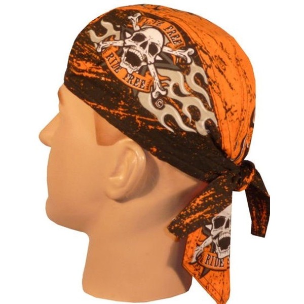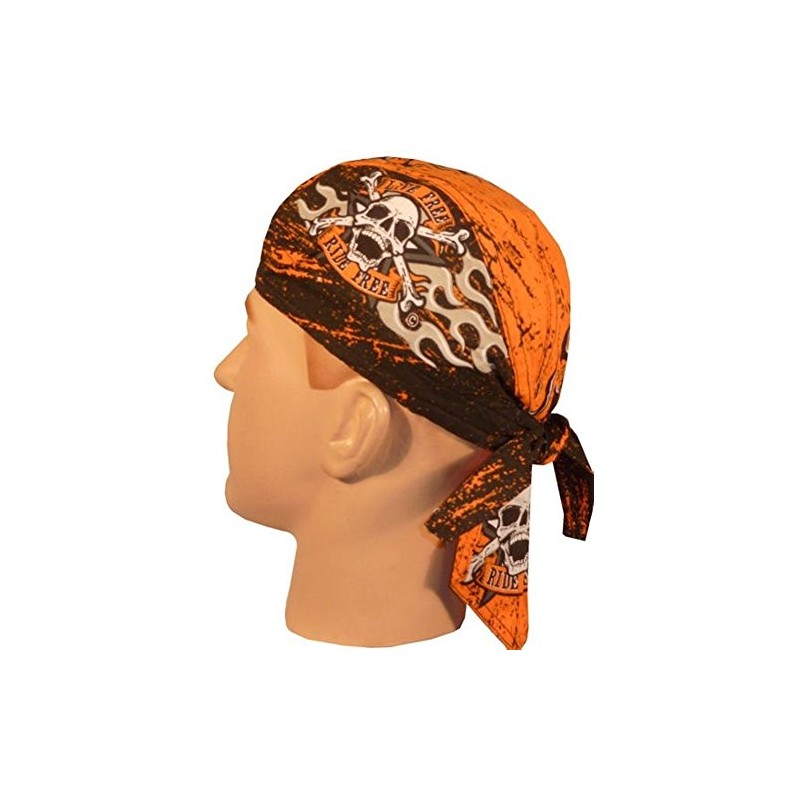 Danbanna Deluxe Live Free Ride Free Skull Flame Design Bandana Headwrap Headscarf Adjustable Cap Hat with Terry Cloth Sweatband By Capsmith