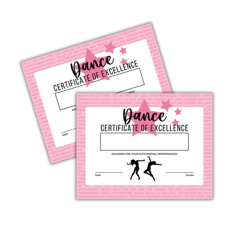 Recognize the effort and achievement of every dancer and cheerleader in your life with these elegant and professional certificates—because every step towards excellence deserves recognition!