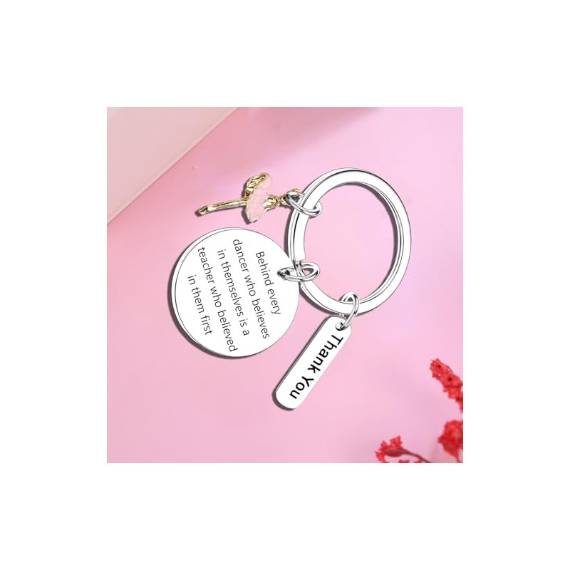 - This dance teacher keyring engraved with: "Behind every dancer who believes in themselves is a teacher who believe in them first".It is a good way to show your appreciation for a special dance teacher with this unique keyring.
