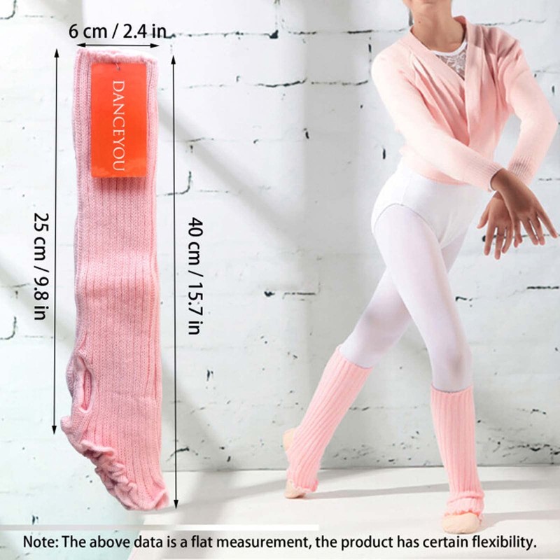 - Size: Total Length 14.5"/37 cm (Total length in unstretched state). The length from the ankle hole to the top is 8.7"/22cm Stretch fabric, 1 average size suitable for little kids and girls. DANCEYOU ballet leg warmers are designed to keep your little dancer cozy and fashionable