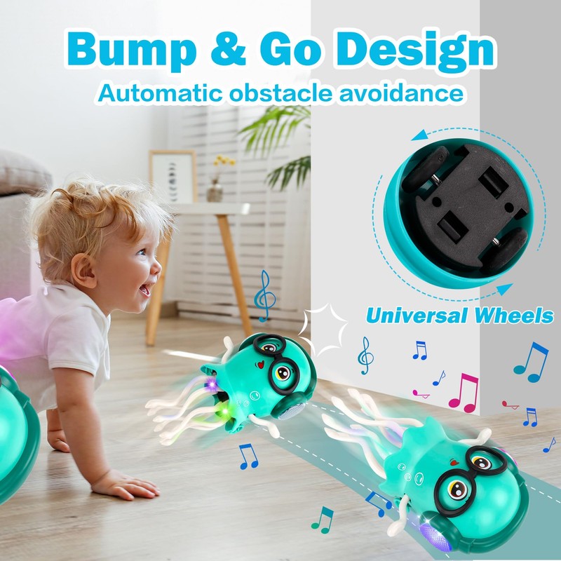 • Smart Obstacle Avoidance Baby Toys: Equipped with a universal wheel, the octopus baby toy automatically changes direction when it hits obstacles. Babies stay engaged chasing the kids toys, making it an ideal crawling companion