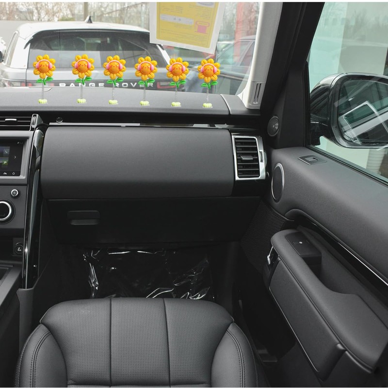 - DECORATIVE SET: Package includes 6 cheerful sunflower dashboard ornaments with pink headphones, perfect for adding a playful touch to your vehicle's interior