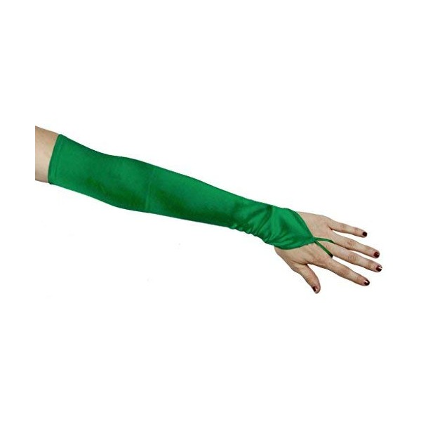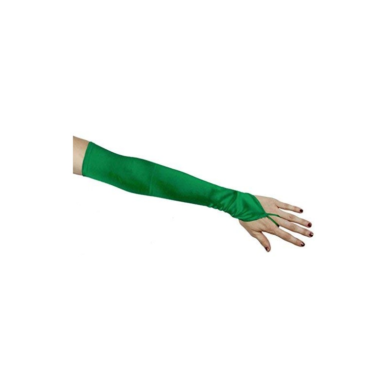 Dancing with Moon Fingerless Satin Opera Length Gloves, Emerald