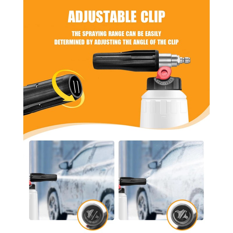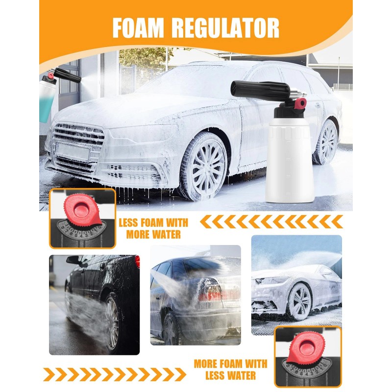 [Adjustable Spray Pattern] Customize your cleaning experience with the easy-to-use control knob, the foam cannon for pressure washer allows you to switch between a wide fan spray for large areas and a narrow stream for precision cleaning.