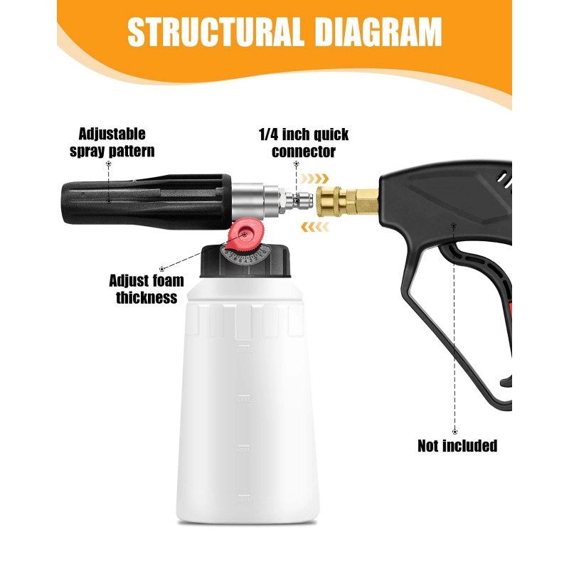 [High-Quality Construction] Crafted with heavy-duty connectors and a robust, anti-corrosive bottle, the foam cannon ensures a long-lasting and reliable performance that withstands frequent use, providing consistent performance even under high pressure and demanding conditions.
