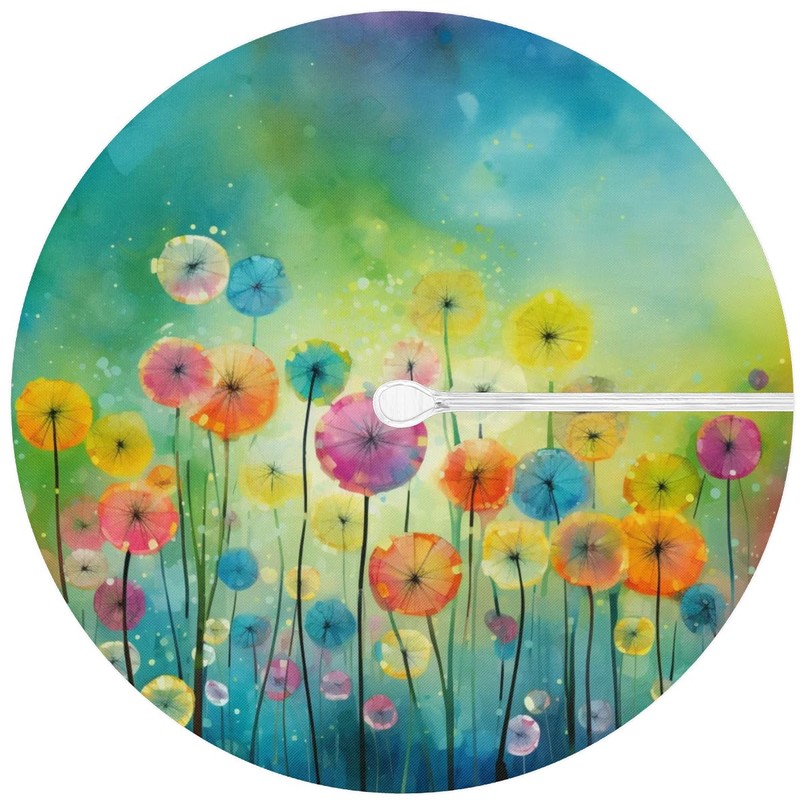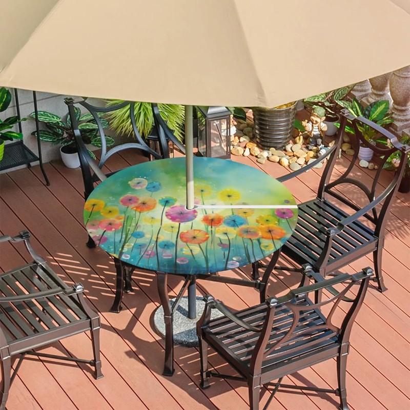 Dandelion Round Outdoor Tablecloth with Umbrella Hole 36"-44" Zippered Elastic Tablecloth Outdoor Round Fitted Tablecloth Waterproof Umbrella Zippered Tablecloth for Patio