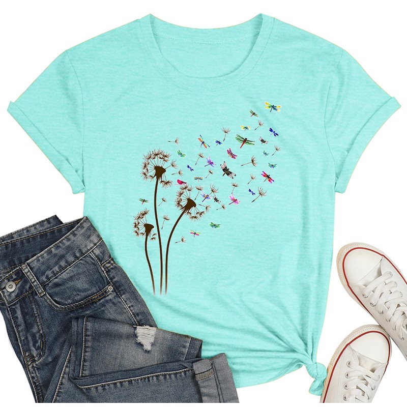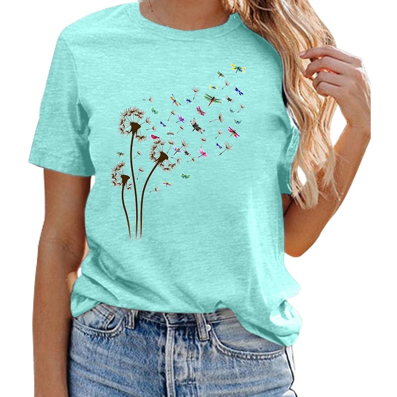 - Ideal Gift:This dragonfly flower print graphic t-tops are a great gift for lovers,mothers, sisters, teachers, classmates and other female friends or family members. Our tee shirts are simple and comfortable, and can be worn appropriately from daily leisure to formal occasions. This round necked short sleeved women's patterned top shirts is worth owning