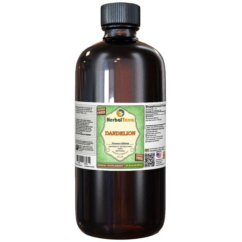 Dandelion (Taraxacum Officinale) Glycerite, Organic Dried Roots Alcohol-Free Liquid Extract (Brand Name: HerbalTerra, Proudly Made in USA) 32 fl.oz (0.95 l)