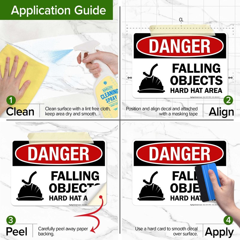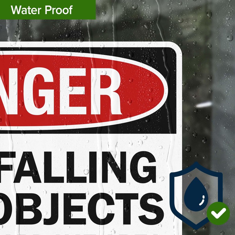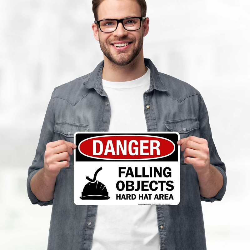 Danger Falling Objects Hard Hat Area With Symbol Sign, 10x7 Inches, 4 Mil Vinyl Decal Stickers Weather Resistant, Made in USA by My Sign Center
