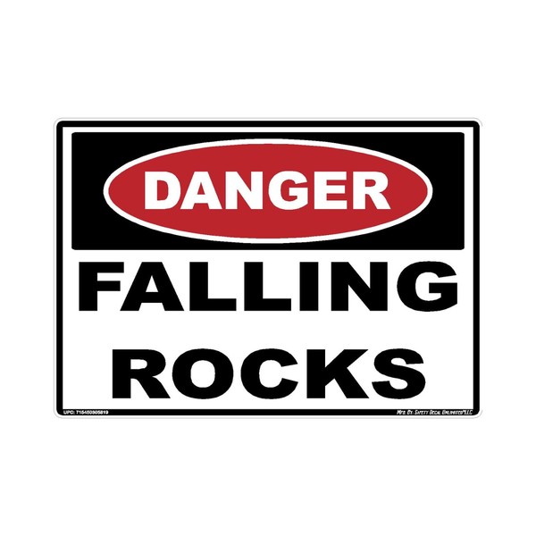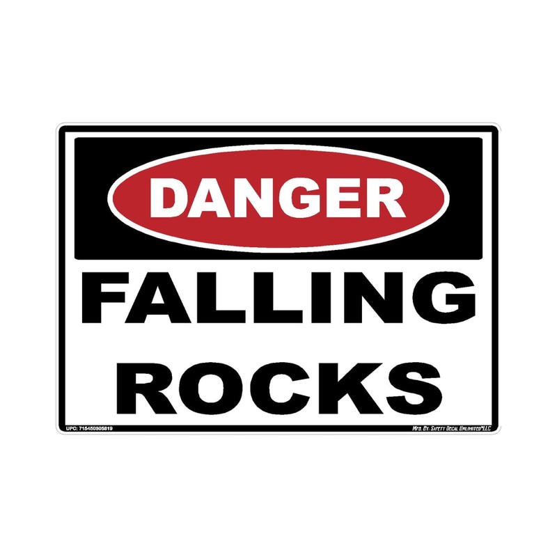Description: Safety Decal Unlimited Danger Falling Rocks Material Debris Label Sticker Decal Construction Explosive Demolition Red Black White Rectangle Made in America