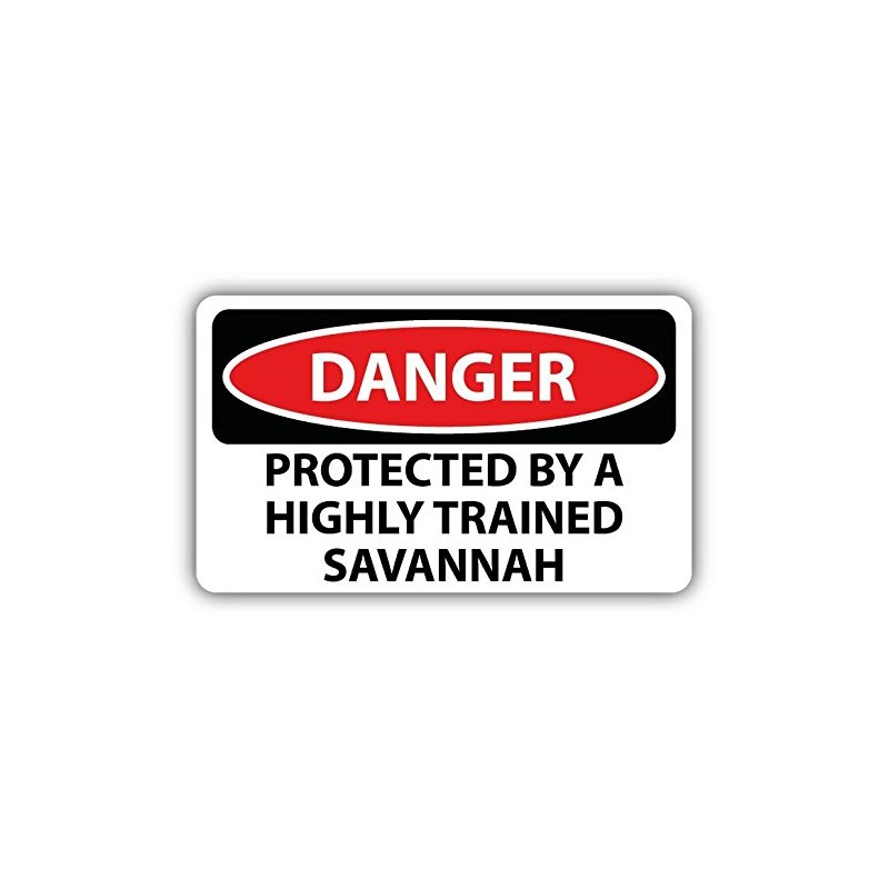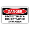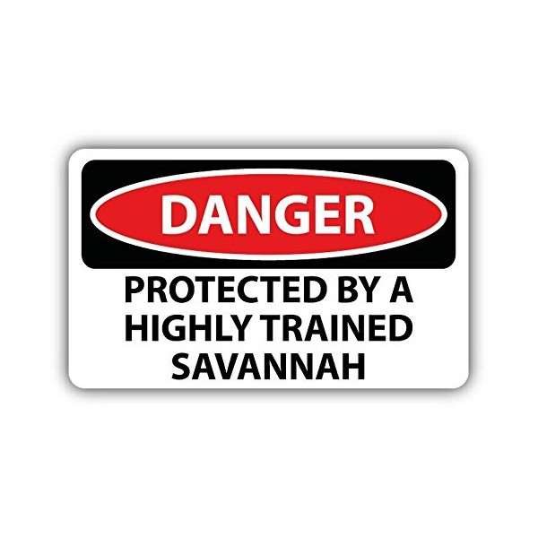 Danger Protected By a Highly Trained Savannah Slogan Sign Sticker Decal Design