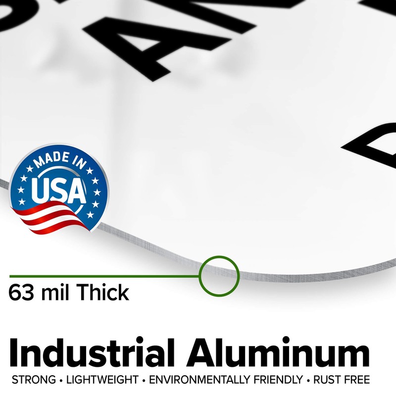 - TOP QUALITY, LONG LASTING - We use only first-class materials to manufacture our signs. Made from 100% rust free strong aluminum, and will stay good as new even after many years of indoor or outdoor use. Plus, our signs are made in the USA!