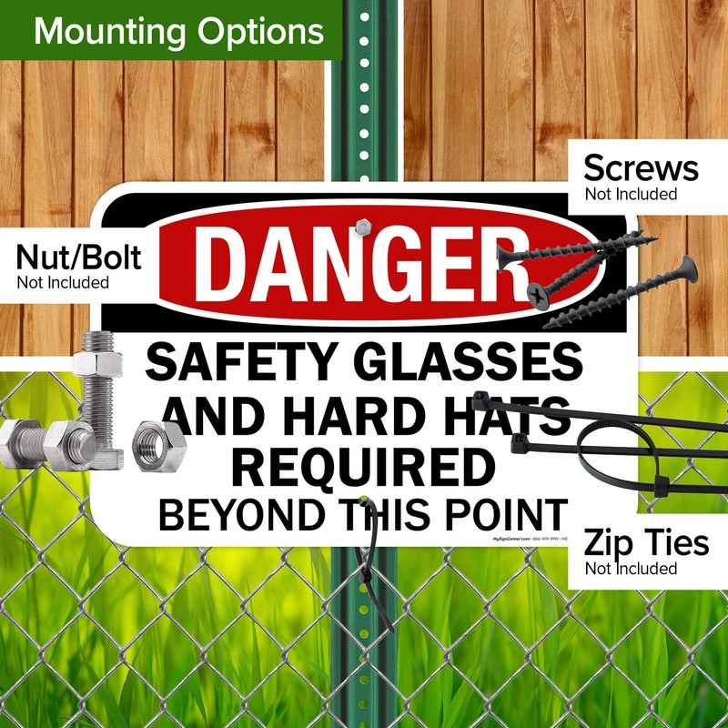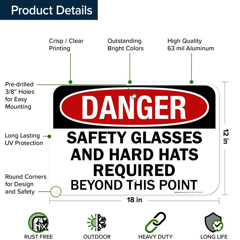 Danger Safety Glasses And Hard Hats Required Beyond This Point OSHA Sign, 12x18 Inches, Rust Free .063 Aluminum, Fade Resistant, Made in USA by My Sign Center