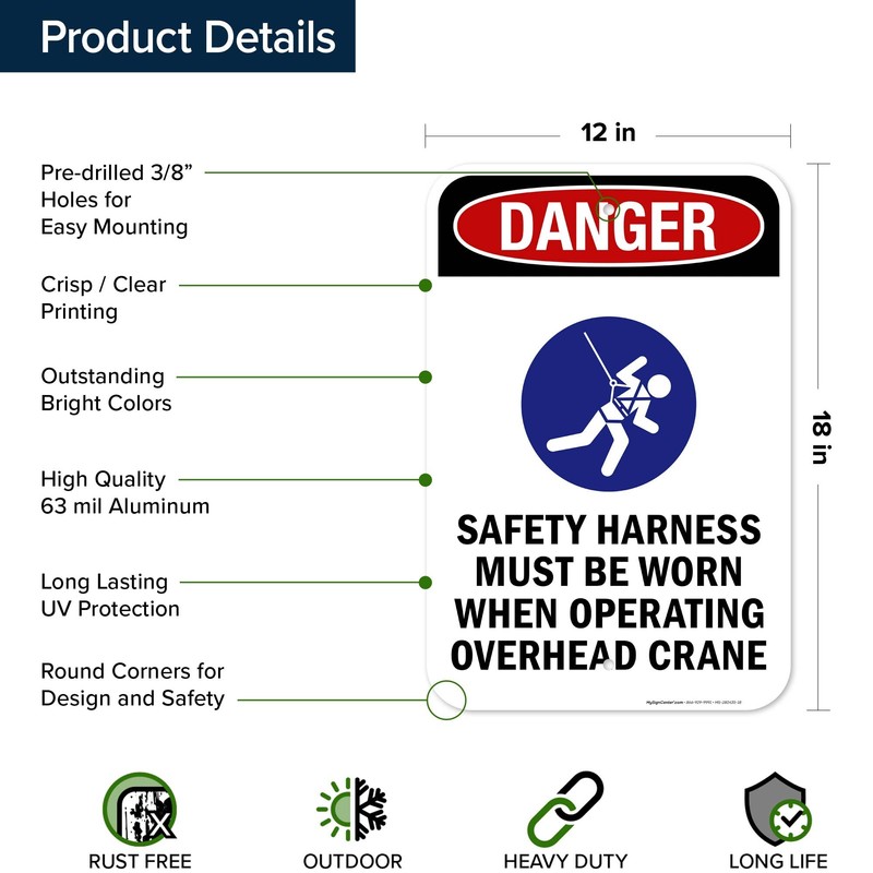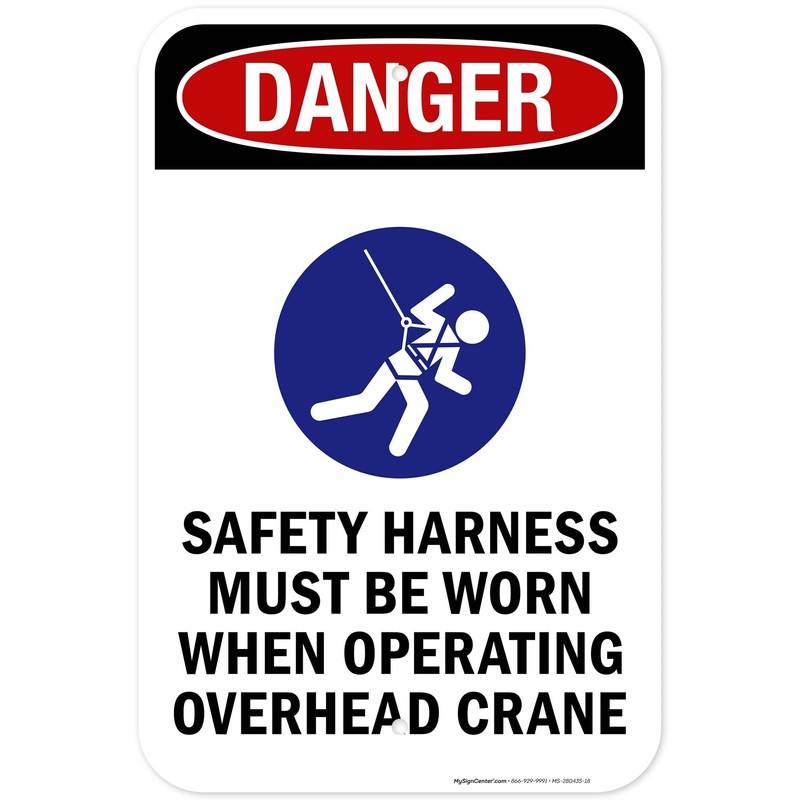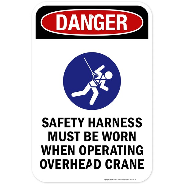 Danger Safety Harness Must Be Worn When Operating Overhead Crane OSHA Sign, 12x18 Inches, Rust Free .063 Aluminum, Fade Resistant, Made in USA by My Sign Center