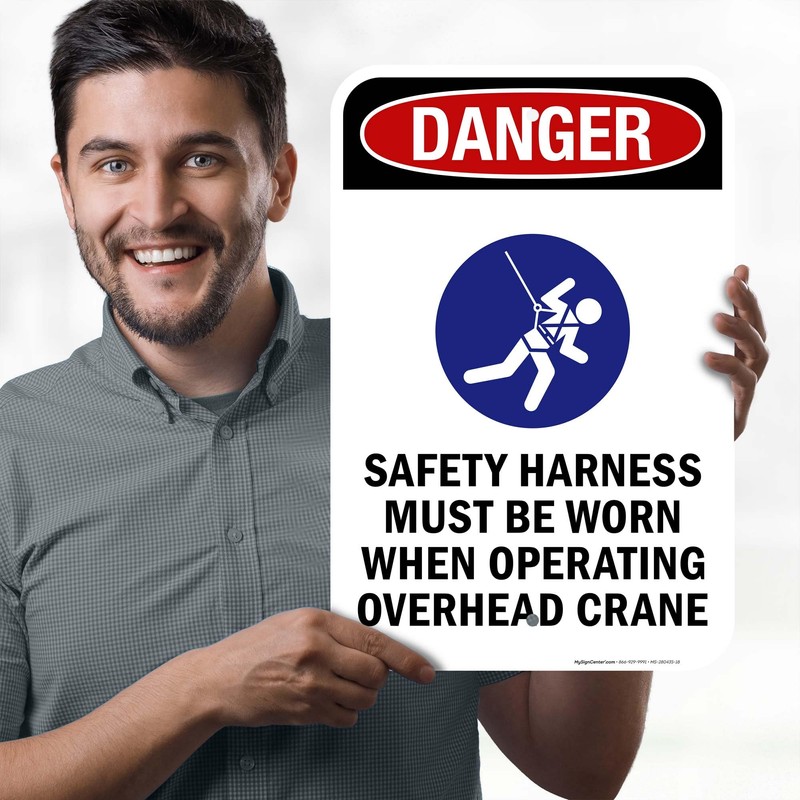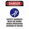 Danger Safety Harness Must Be Worn When Operating Overhead Crane OSHA Sign, 1...