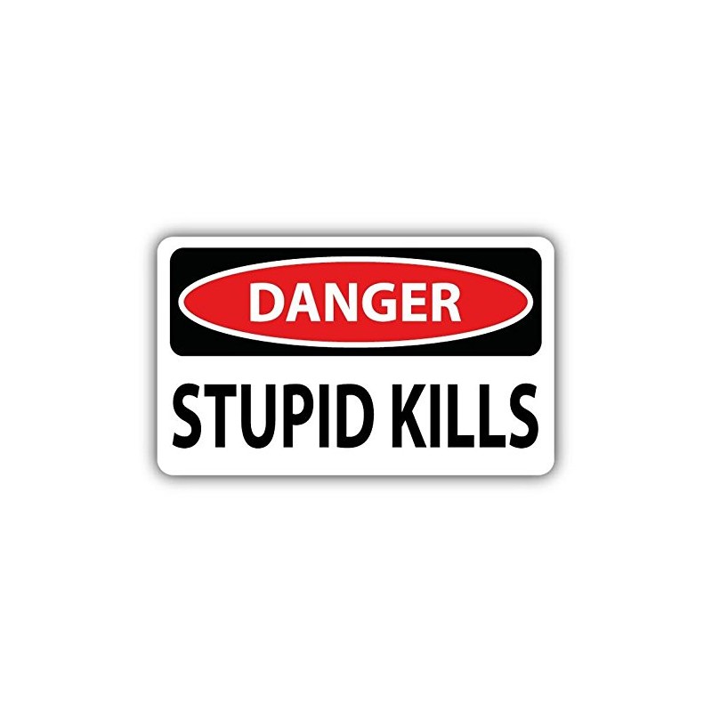 Danger Stupid Kills Slogan Sign Sticker Decal Design 5'' X 3''