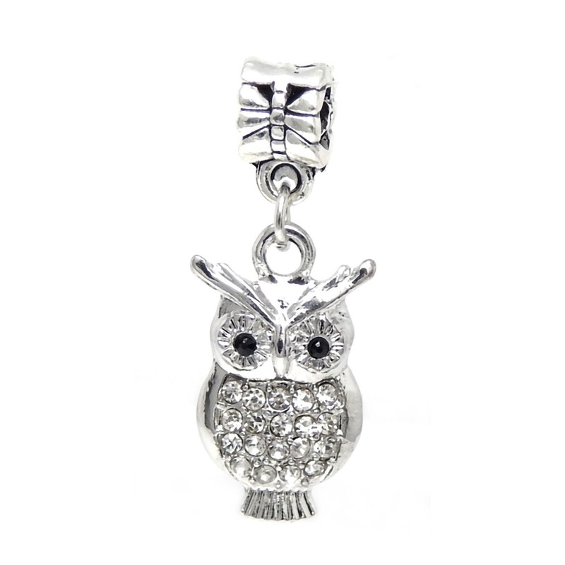 Dangle Owl with Clear Crystals Charm Bead for Charms Bracelets